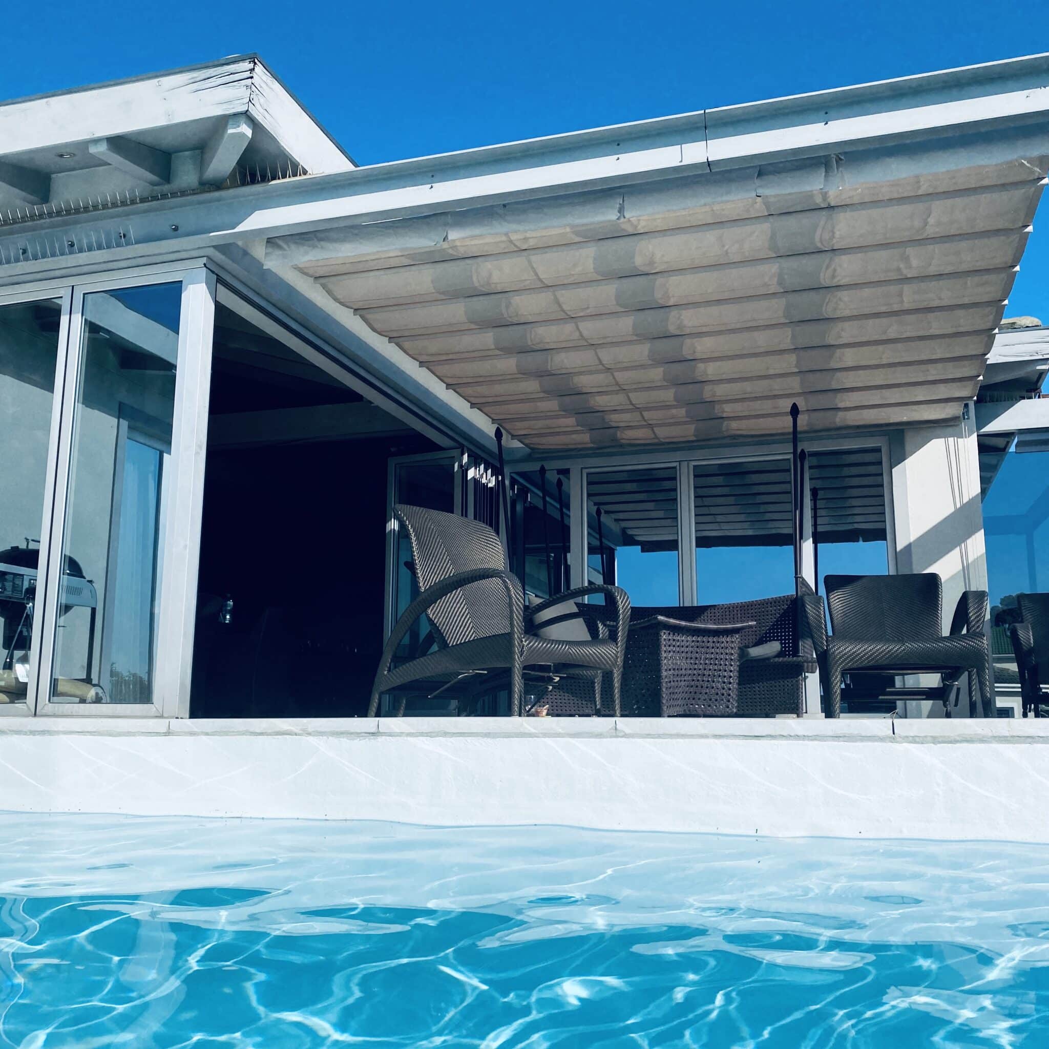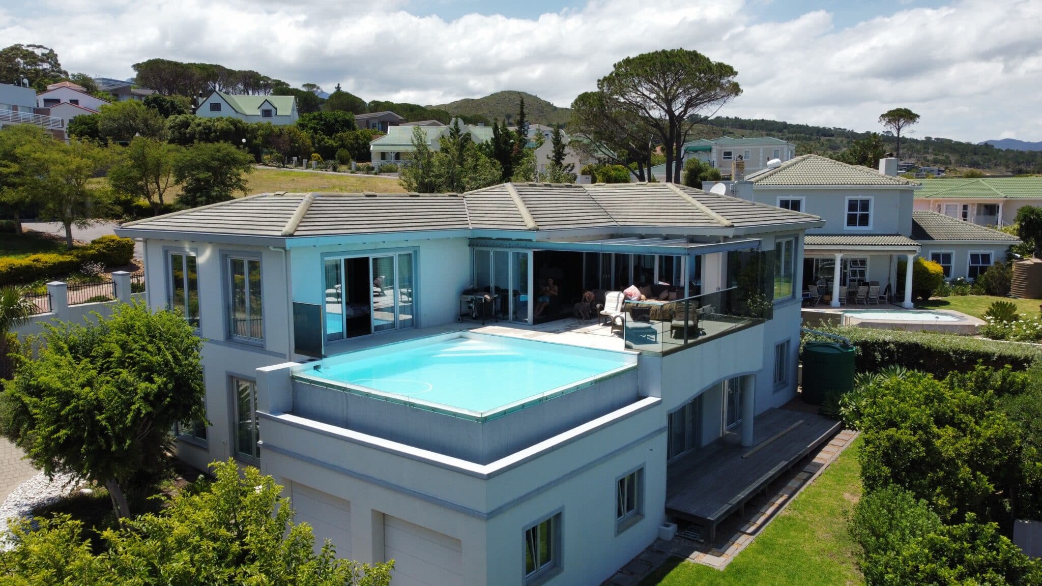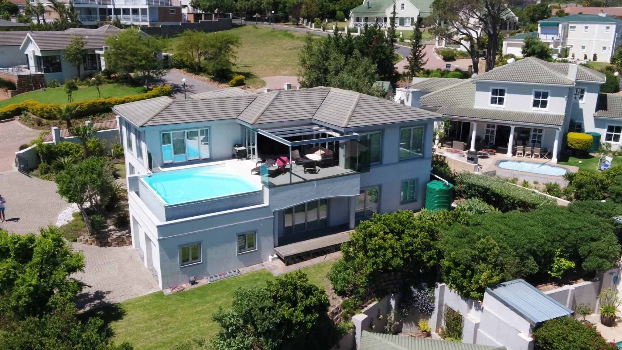 Die Villa „THE VIEW“ ist ein Feriendomizil der absoluten Luxusklasse. Das Anwesen liegt in Somerset West, in dem gesicherten Schapenberg Estate in Hanglage, ist erstklassig ausgestattet und bietet den Urlaubern jeglichen Komfort. Die Villa verfügt über eine großzügige Terrasse, welche man bei Bedarf beschatten kann. Von der Terrasse genießt man einen einmaligen Blick auf die False Bay sowie den Tafelberg. Hier befindet sich auch der großzügige, selbst reinigender Pool ! Die Villa wurde im Jahr 2005 erbaut und bietet jeglichen Luxus: Im Erdgeschoß befinden sich das beeindruckende Foyer mit Relaxing Area, sowie 3 Schlafzimmer mit je einem eigenen Bad. Alle Zimmer sind sehr komfortabel und modern ausgestattet. Im Obergeschoß befinden sich der Master Bedroom – ausgestattet mit eigenem, exklusivem Bad – eine Küche, eine Showküche, ebenso der Ess- und Wohnbereich.